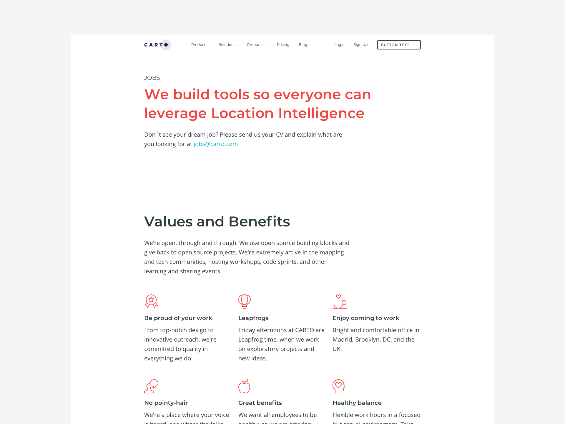 Carto, the Location Intelligence platform. It leads the world of Location Intelligence and Data Visualization, providing the capacity to any organization and person to extract key information from geolocalized data. Converts your location data into business results.